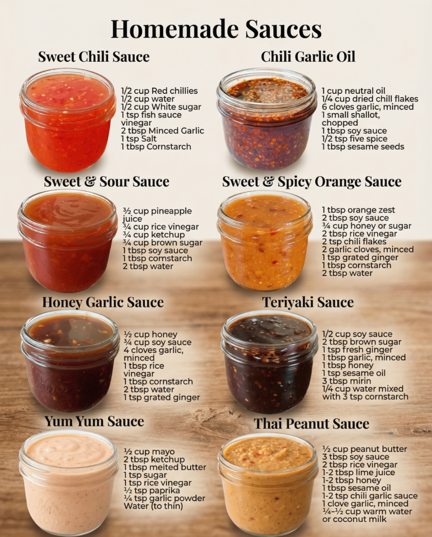 If you love restaurant-style flavors but want to save money and eat better at home, these easy homemade sauce recipes are exactly what you need. From sweet chili sauce and teriyaki sauce to Thai peanut sauce and yum yum sauce, this guide includes eight versatile sauces that will instantly upgrade your meals.