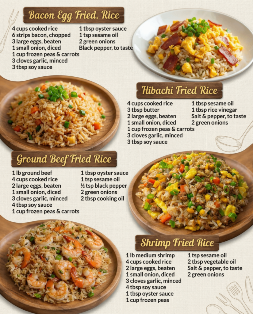 Fried rice is one of the most loved comfort foods in the world. It’s quick, customizable, budget-friendly, and incredibly satisfying. Whether you prefer smoky bacon, juicy shrimp, hearty ground beef, …