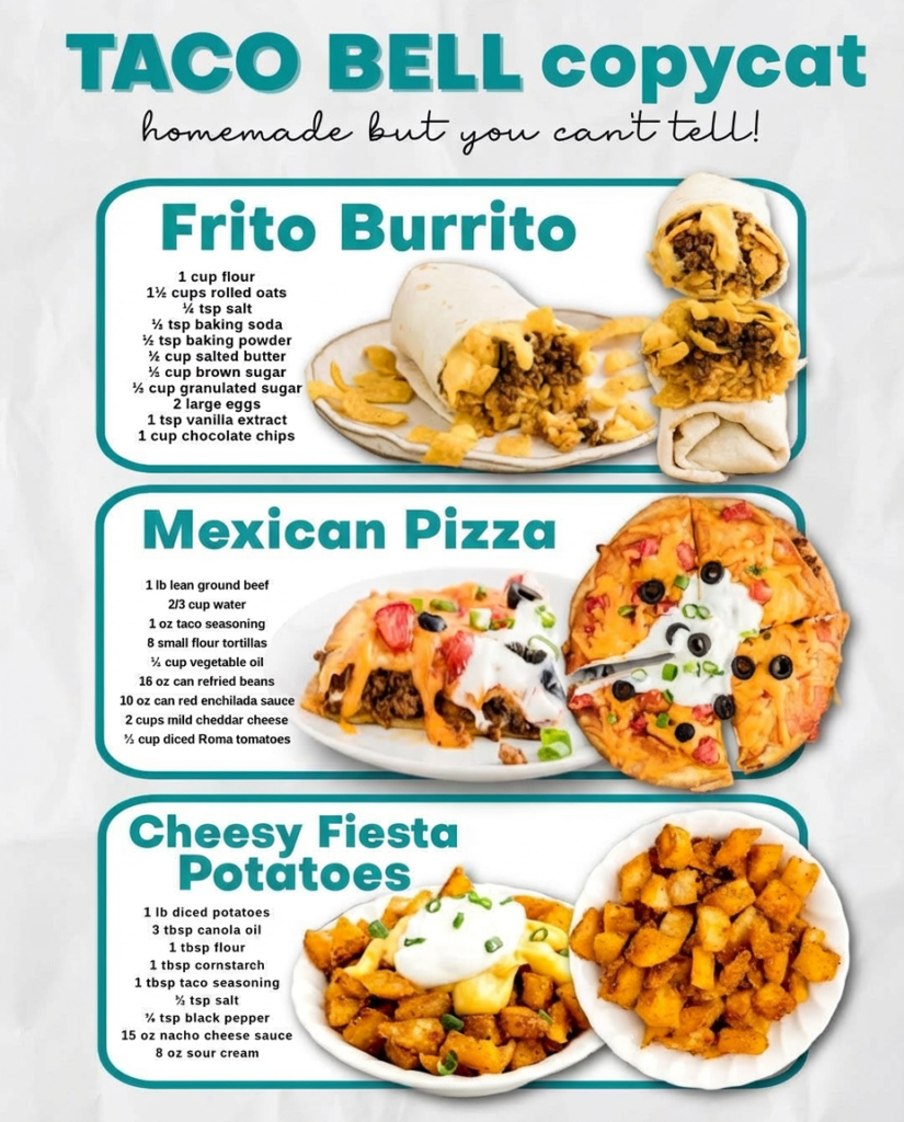 Love Taco Bell but want to skip the drive-thru? These Taco Bell copycat recipes recreate three of the most iconic menu items—Frito Burrito, Mexican Pizza, and Cheesy Fiesta Potatoes—using simple, …