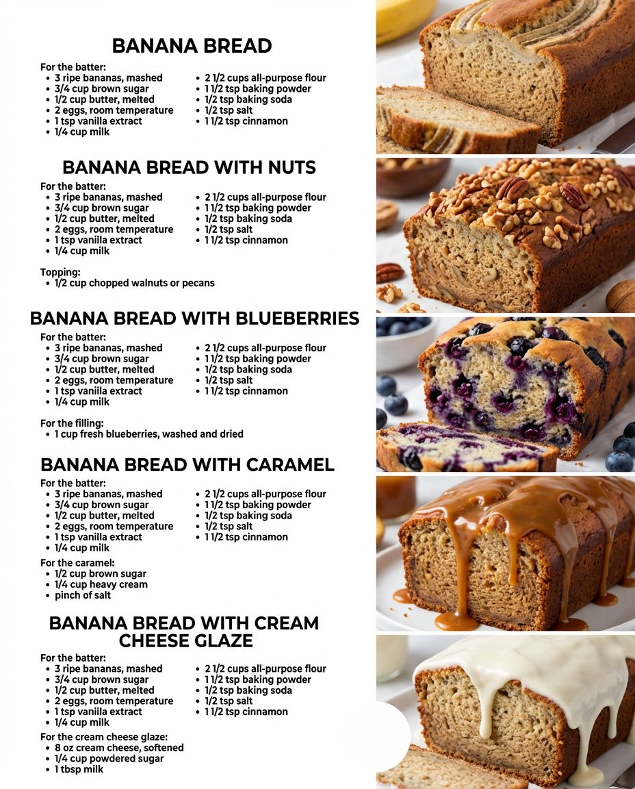Whether you’re a banana bread purist who loves the classic version or an adventurer ready to try the caramel swirl, this recipe collection has something for everyone. The base recipe is foolproof, and the variations let you customize based on your mood, your pantry, and your audience.