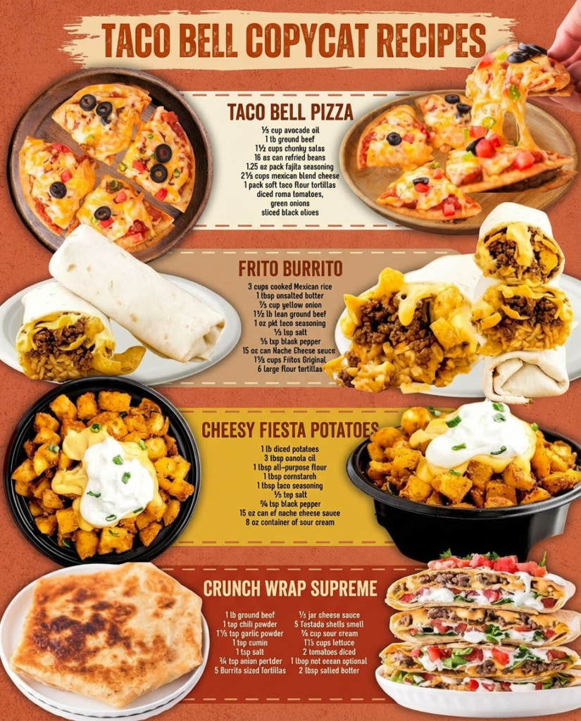 4 Popular Taco Bell Copycat Recipes: Make Mexican Pizza, Frito Burrito, Cheesy Fiesta Potatoes & Crunchwrap Supreme at Home