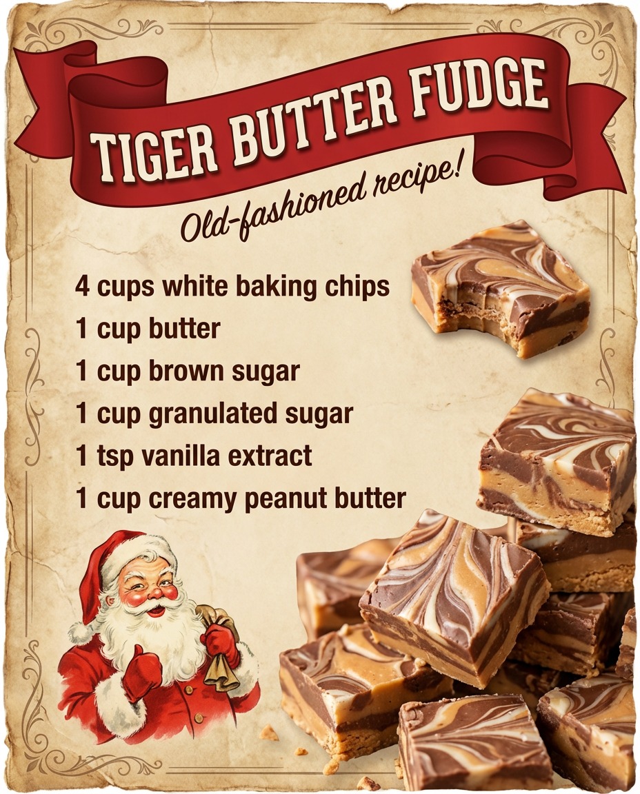 The recipe was popularized by Betty Crocker and various Southern cooking magazines. It became particularly beloved in the South, where peanuts are a staple crop and peanut butter features prominently in regional cuisine. The name “tiger butter” appears to have been coined because the swirled pattern resembles tiger stripes, though some also call it “zebra fudge” or simply “swirled peanut butter fudge.”